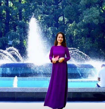 Thiếu phụ tươi cười bên khóm hoa