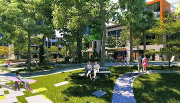Công viên là một ô vuông đất như cái vườn nhỏ nằm giữa những dãy nhà cao năm tầng lầu, xung quanh là đường nội bộ dẫn ra đường chính lúc nào cũng có thể kẹt xe.