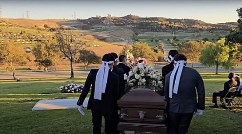 Đông đảo bà con và bạn bè của gia đình đã đến Đồi Hồng (Rose Hills) để tiễn đưa bác một chiều tháng 11. Sau lễ tang, tám người nam gồm con, cháu, cháu nội, cháu họ nhấc quan tài ra khỏi xe tang đem xuống phần mộ bác trên Đồi Hồng. Tôi thấy dường như nắng vàng rực rỡ hơn trên đồi khi di quan. Tôi không khỏi liên tưởng đến cuộc đời của bác. Với bao lặn ngụp đắng cay trong đời từ lúc nhỏ, nhưng trong những năm tháng cuối cùng, cuộc đời của bác bừng lên ánh hạnh phúc với con cháu vây quanh. Nắng chiều trên Đồi Hồng hôm đó thật đẹp, giống như những tia nắng chiều của cuộc đời bác. Tạm biệt bác! Chúng ta chắc chắn sẽ gặp lại nhau trong nước Chúa. Nơi đó chắc chắn sẽ có nhiều hoa đẹp, vạn, vạn lần hơn những đoá hồng mà bác vẫn thích ngắm với con. -./.