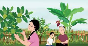 Tôi và mấy đứa em họ thường lén đi lên vườn hái trộm dâu đất, bòn bon và bồ quân. Gia đình cậu tôi sống nhờ những cây trái trong vườn bởi mỗi mùa hợp tác xã thu hơn phân nửa lúa gặt ngoài đồng. Cậu tỉa bớt những cây lớn trồng thơm, bưởi, mít, tiêu, chè. Cây trái ngon đẹp trong vườn mang ra chợ bán là nguồn thu nhập chính của gia đình. “Nhà vườn ăn cau sâu.” Chúng tôi được cho những trái đèo đẹt để nhâm nhi. Chẳng hề gì, tôi vẫn thích khu vườn. Dưới những táng cây to lớn, ngò gai mọc rất nhiều. Vô tình giẫm lên lá ngò gai, mùi thơm toả ra nồng nàn. Cây thì đủ loại tôi chẳng nhớ tên. Thứ thì thân xù xì, có loại thì thẳng đứng da trơn láng. Tôi phụ với mấy đứa em họ đi lượm trái dầu lai đem về phơi, đập bể vỏ cứng, lấy ruột ép lấy dầu để bán. Tôi không thể nào quên những tàng cây râm mát, mùi mít thơm nồng nàn trong gió, thoang thoảng đâu đó mùi hoa dủ dẻ nhẹ nhàng và tiếng chim hót giữa trưa hè chói nắng. Khu vườn đi vào giấc mơ của tôi. Tôi ước mơ một mái ấm gia đình với mảnh vườn nhỏ sau nhà trồng những cây hoa trái mà tôi thích.