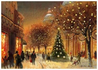 Đường phố hiện ra trước mắt cậu bé, phố rộng quá!. Đông đảo như thế chắc người đi lại sẽ có thể dẫm bẹp cậu mất, cậu bé nghĩ. Người ta chơi đùa, hò hét, chạy nhảy, cưỡi ngựa, mà còn ánh sáng nữa, ánh sáng chói chang rực rỡ!. Còn kia là gì nhỉ ? Chà, cửa kính lớn quá, và phía sau kính cửa là một căn phòng thật lớn, trong phòng có một cái cây cao vút lên tận trần nhà; đó là cây thông Noel, trên cây có rất nhiều đèn, rất nhiều giấy vàng lấp lánh và những trái táo, xung quanh còn có những con búp bê, những chú ngựa nhỏ; Một lũ trẻ đang chạy nhảy quanh phòng, bọn trẻ áo quần chỉnh tề, sạch sẽ, cười đùa, ăn uống.