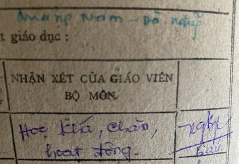 Trong khi chờ đợi chị Kim Đào trả lời, tôi hỏi mấy cô bạn ngày xưa có học với cô và được cô chủ nhiệm lớp. Không ai nhớ họ của cô. Tôi chợt nhớ đến cuốn học bạ cấp II. Có thể tôi tìm thấy tên họ cô trong đó. Tôi cũng chẳng hiểu tại sao tôi lại giữ những cuốn học bạ cấp II và cấp III ấy. Hồi đó, tôi học hành chẳng có gì giỏi giang nên những bảng điểm thì tàng tàng có gì hay đâu mà phải giữ. Những cuốn học bạ đó cũng không đẹp cho mấy nếu không nói là khó coi theo đúng nghĩa đen.