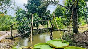 chiếc võng giăng giữa hai cây mít sau nhà. Võng đong đưa,
