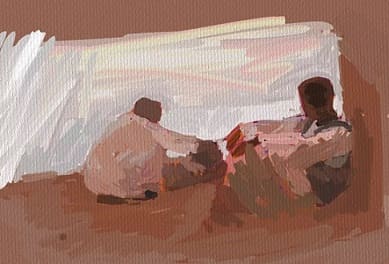 Bây giờ ông ngồi trên chiếc ghế xếp này trong bóng mát, mắt lơ đãng nhìn đường phố và người qua lại. Ông duỗi chân trong khi bóng dâm đang chiến đấu cùng ngôi mặt trời rực lửa. Ông nghe có tiếng người hỏi chuyện: