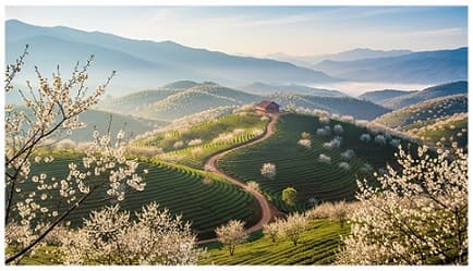 Từ cửa sổ Bình thỏa sức thả tầm mắt nhìn xuống thung lũng trắng hoa Mơ, hoa Mận. Cứ cuối mùa Đông khi sương giăng trắng