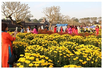 Ngay từ rằm tháng Chạp, hoa tươi, cây cảnh đã bày bán hai bên đường phố. Những chợ hoa ngày Tết ở Phu Văn Lâu, ngã ba đàn Nam Giao hay góc ngã sáu của Huế bỗng trở nên rộn ràng. Và như thế Tết đã tràn ra đường phố một cách rực rỡ. Chao ôi là hoa đẹp khắp nơi! Mai vàng e ấp, cúc vàng rực rỡ, vạn thọ tròn đầy, lay ơn thẳng tắp, những chậu quất, những cây bonsai được uốn công phu và cả những cành đào về từ phía Bắc, khoe sắc giữa lòng cố đô, tạo nên một thứ “hương xuân” đặc biệt. Đường phố trở nên quyến rũ lạ thường, bởi sức sống của thiên nhiên được mang về từ các làng hoa ngoại ô. Người qua lại đông hơn, bước chân cũng như nhẹ hơn. Lòng người phơi phới, như trẻ lại cùng mùa xuân của đất trời. Người Huế đi chợ hoa đôi khi không chỉ để mua, mà để "thưởng" cái không khí xuân, để thấy mình vẫn đang nhịp bước cùng hơi thở của mùa xuân.