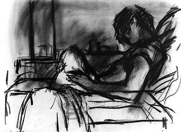 Phụng vẫn đẹp như xưa dù không còn những nét ngây thơ nữa. Q. đứng ngây người ra nhìn Phụng, quên cúi chào khán giả, quên luôn chuyện làm một con rùa. Phụng dường như cũng đã mang máng nhận ra gương mặt quen quen của anh chàng bạn học tội nghiệp ngày xưa. Đôi mắt của cô mở to, ngơ ngác buồn ...