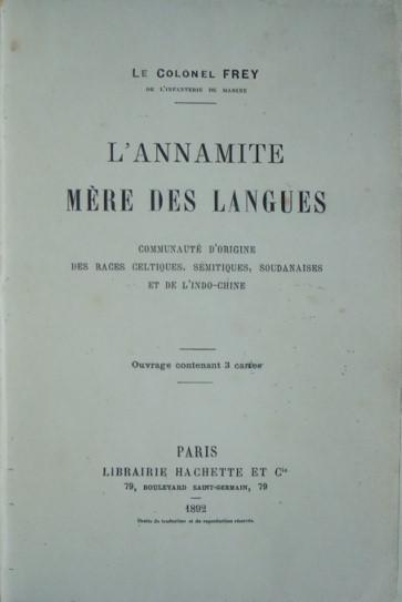 Vào năm 1898, H. Frey, một Đại tá người Pháp, từng công tác ở Tây Phi sau đó có mặt ở Đông Dương, đã xuất bản cuốn L'annamite, mère des langues: communauté d'origine des races celtiques, sémitiques, soudanaises et de l'Indo-Chine: Tiếng Annam, mẹ của các ngôn ngữ: Cộng đồng các chủng tộc Xentơ, Xémit, Xuđăng và Đông Dương. Bằng kinh nghiệm ở Châu lục đen, nhà ngữ học chân thực này cho rằng tiếng Việt gần gũi với tiếng các sắc dân châu Phi và là nguồn cội của mọi ngôn ngữ phương Đông. Tiếp đó ông còn cho ra hai cuốn khác khẳng định quan điểm của mình. Tuy nhiên, các viện sĩ của Viễn Đông Bác Cổ “không thèm chấp” gã tay ngang võ biền. Không chỉ vậy, vào các năm 1937-1938 còn có cuộc tranh luận giữa nhà ngữ học người Ba Lan Przilusky với viện sĩ Maspéro. Từ khảo cứu của mình, Przilusky phát triển quan điểm của H. Frey nhưng kết cục phần thắng thuộc về bậc lão làng!