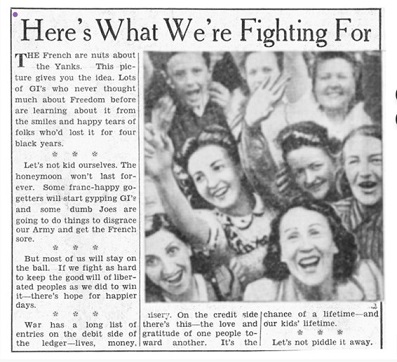 chụp ảnh những người lính Mỹ hôn những phụ nữ trẻ người Pháp" . "Sau đó, họ rút
