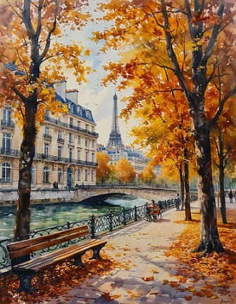 Từ đồi Montmartre xuống khu phố sang trọng Champs Elysées, đại lộ được mệnh danh đẹp nhất thế giới, rồi ngang nhà thờ Notre Dame để đến vườn Luxembuorg qua khu phố Latin vào những con đường cổ trải đá, những ngôi nhà xưa mái tháp, mặt tiền được điêu khắc trạm trổ như trong những câu chuyện thần thoại cổ tích. Mạch sống của Paris là những con đường ngoằn ngoèo, nhỏ hẹp, chằng chịt san sát nhà hàng, cửa hiệu, quán café, nơi ấy lúc nào cũng đông khách và vỉa hè luôn rộn rã bước chân người. Nhưng Paris quyến rũ hơn khi bước vào thu, những con đường ngập lá vàng, hàng cây dọc bên bờ sông Seine vi vu trong gió. Chiếc cầu bắc ngang sông soi mình trong bóng nước. Dòng sông thơ mộng ấy là nguồn cảm hứng của biết bao nghệ sĩ, họ dệt cho đời những thiên tình sử còn ghi lại trong văn học nghệ thuật.