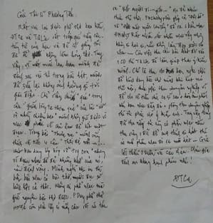 HÌNH 4. Thư của Đynh Trầm Ca viết gửi Phương Tấn. .